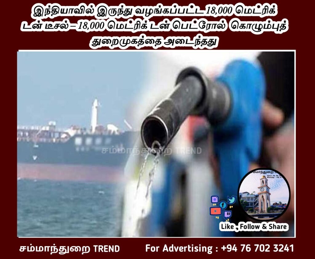 இந்தியாவில் இருந்து வழங்கப்பட்ட 18,000 மெட்ரிக் டன் டீசல் – 18,000 மெட்ரிக் டன் பெட்ரோல் கொழும்புத் துறைமுகத்தை அடைந்தது