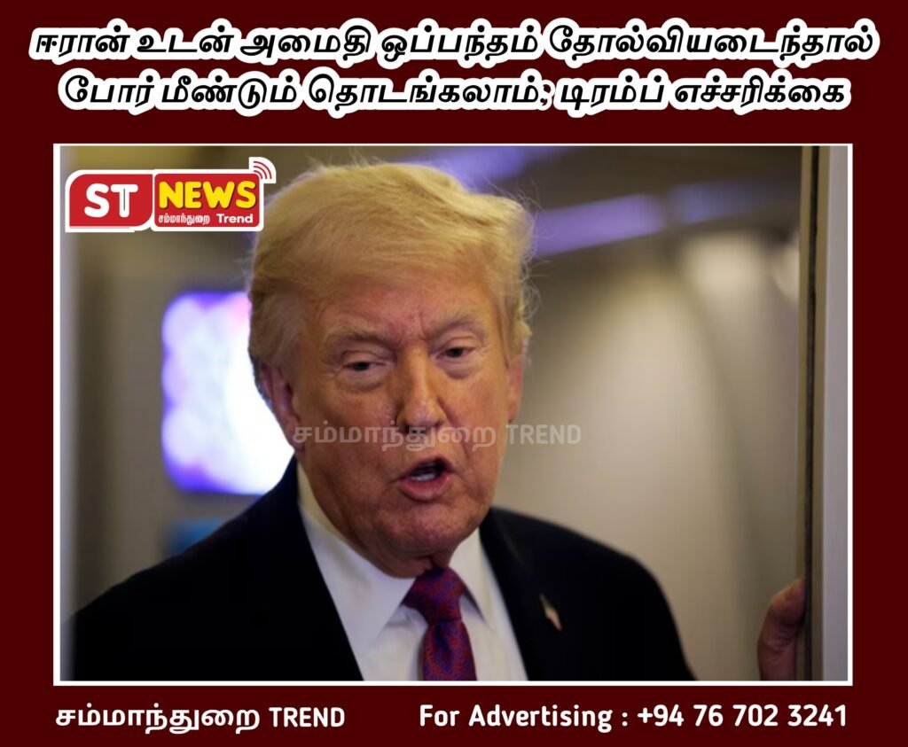 ஈரான் உடன் அமைதி ஒப்பந்தம் தோல்வியடைந்தால் போர் மீண்டும் தொடங்கலாம்: டிரம்ப் எச்சரிக்கை