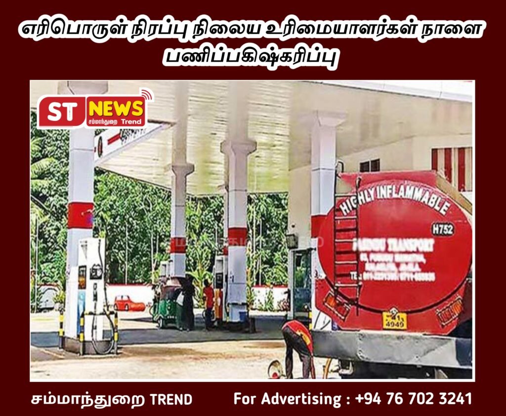 பல கோரிக்கைகளை முன்வைத்து நாட்டின் அனைத்து எரிபொருள் நிரப்பு நிலைய உரிமையாளர்களும் நாளை (06) முற்பகல் 9.30 மணி முதல் இலங்கை பெற்றோலியக் கூட்டுத்தாபனத்திற்கு முன்னால் அமைதிப் போராட்டமொன்றை முன்னெடுக்கவுள்ளதாக எரிபொருள் விநியோகஸ்தர்கள் சங்கம் தெரிவித்துள்ளது.