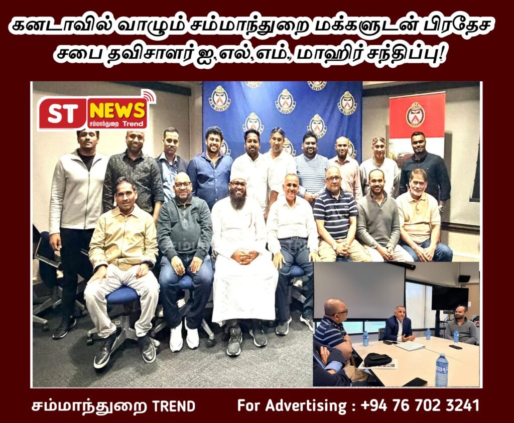 கனடாவுக்கு உத்தியோகபூர்வ விஜயம் மேற்கொண்டுள்ள சம்மாந்துறை பிரதேச சபையின் தவிசாளர் ஐ.எல்.எம். மாஹிர் அவர்களுக்கும், அங்கு வசிக்கும் சம்மாந்துறையைச் சேர்ந்த சமூகத்தினருக்கும் இடையிலான சந்திப்பொன்று நேற்று (ஏப்ரல் 19) மிகவும் மகிழ்வான முறையில் நடைபெற்றது.