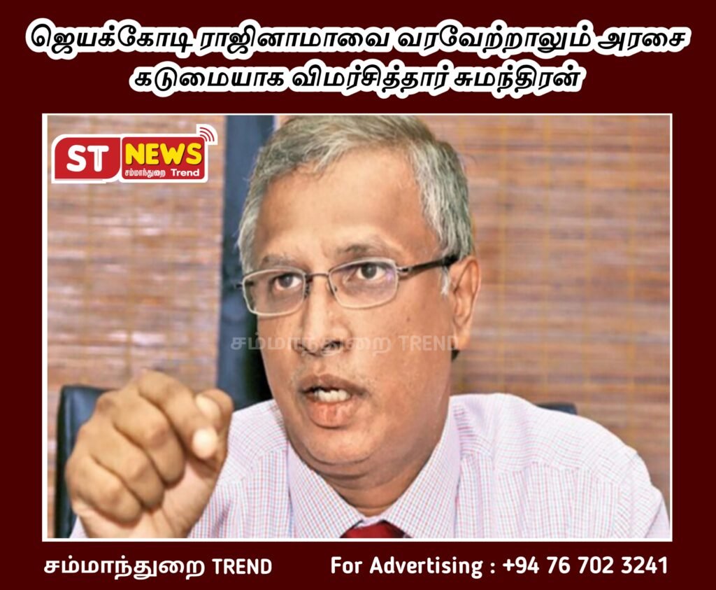 M. A. Sumanthiran, எரிசக்தி அமைச்சர் Kumara Jayakody அவர்களின் ராஜினாமாவை வரவேற்றுள்ளதுடன், அரசாங்கம் மற்றும் NPP நாடாளுமன்ற உறுப்பினர்கள் அவரை பாதுகாத்தது கடுமையாக கண்டிக்கப்பட வேண்டும் என தெரிவித்துள்ளார்.