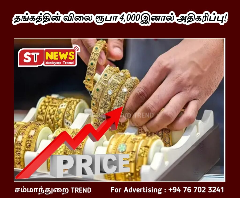 இலங்கையில் இன்று (15) தங்கத்தின் விலை ரூபா 4,000இனால் அதிகரித்துள்ளதாக உள்ளூர் சந்தைத் தரவுகள் தெரிவிக்கின்றன.