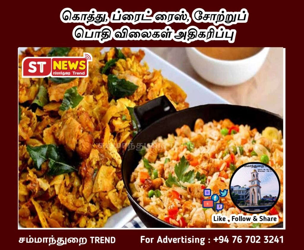 கொத்து, ப்ரைட் ரைஸ், சோற்றுப் பொதி விலைகள் அதிகரிப்பு