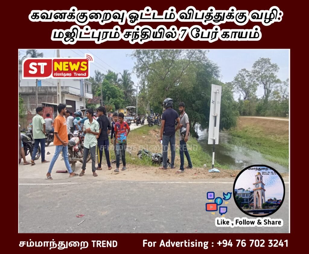 கவனக்குறைவு ஓட்டம் விபத்துக்கு வழி: மஜிட்புரம் சந்தியில் 7 பேர் காயம்