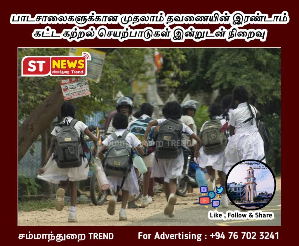 பாடசாலைகளுக்கான முதலாம் தவணையின் இரண்டாம் கட்ட கற்றல் செயற்பாடுகள் இன்றுடன் நிறைவு