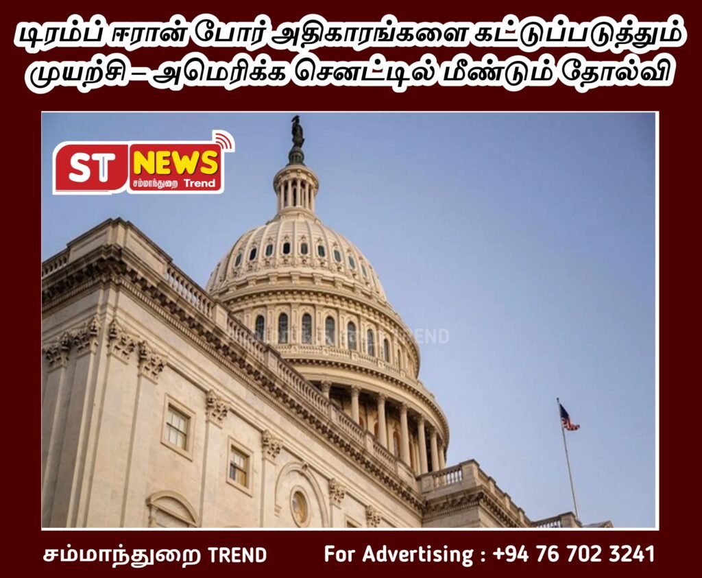 டிரம்ப் ஈரான் போர் அதிகாரங்களை கட்டுப்படுத்தும் முயற்சி – அமெரிக்க செனட்டில் மீண்டும் தோல்வி