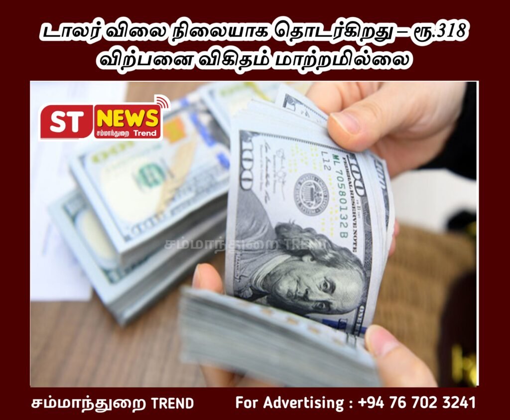 டாலர் விலை நிலையாக தொடர்கிறது – ரூ.318 விற்பனை விகிதம் மாற்றமில்லை