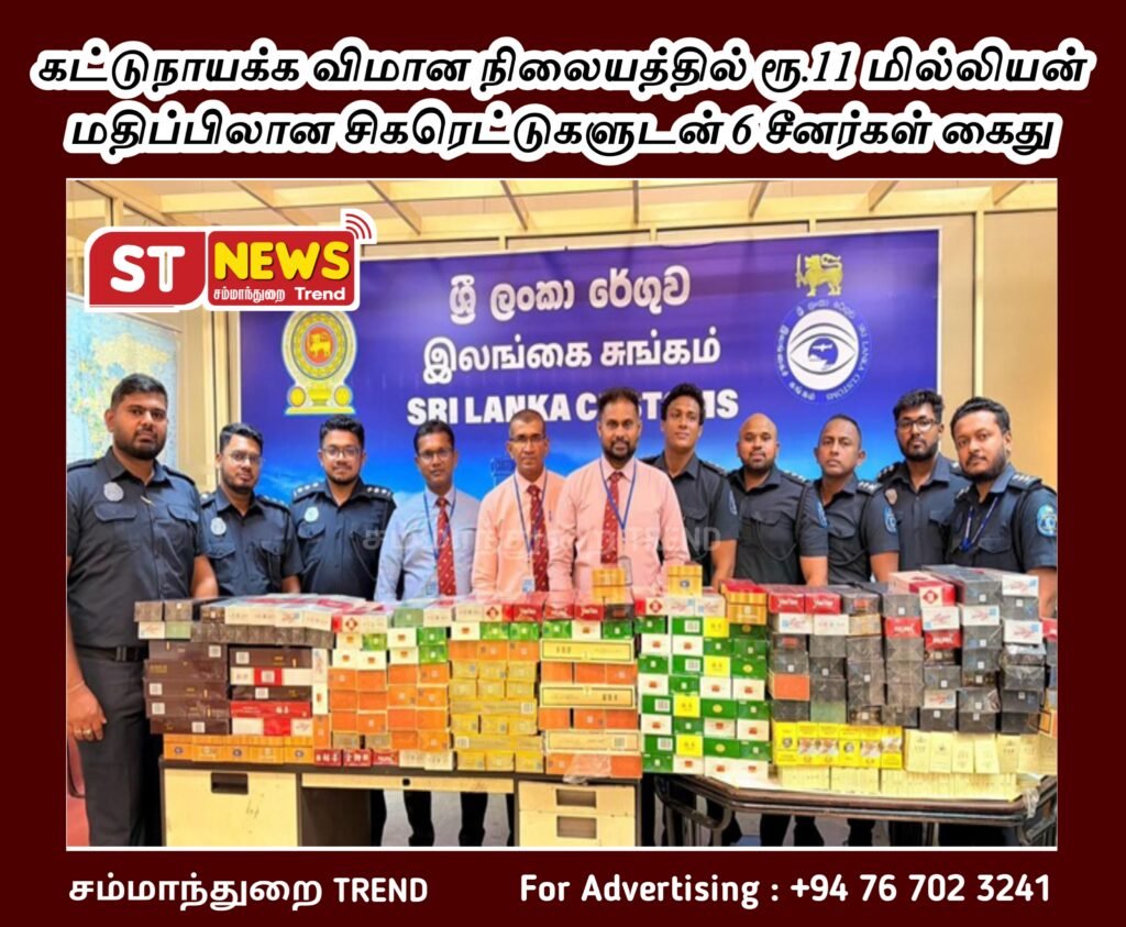 கட்டுநாயக்க விமான நிலையத்தில் ரூ.11 மில்லியன் மதிப்பிலான சிகரெட்டுகளுடன் 6 சீனர்கள் கைது