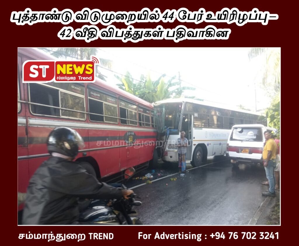 புத்தாண்டு விடுமுறையில் 44 பேர் உயிரிழப்பு – 42 வீதி விபத்துகள் பதிவாகின