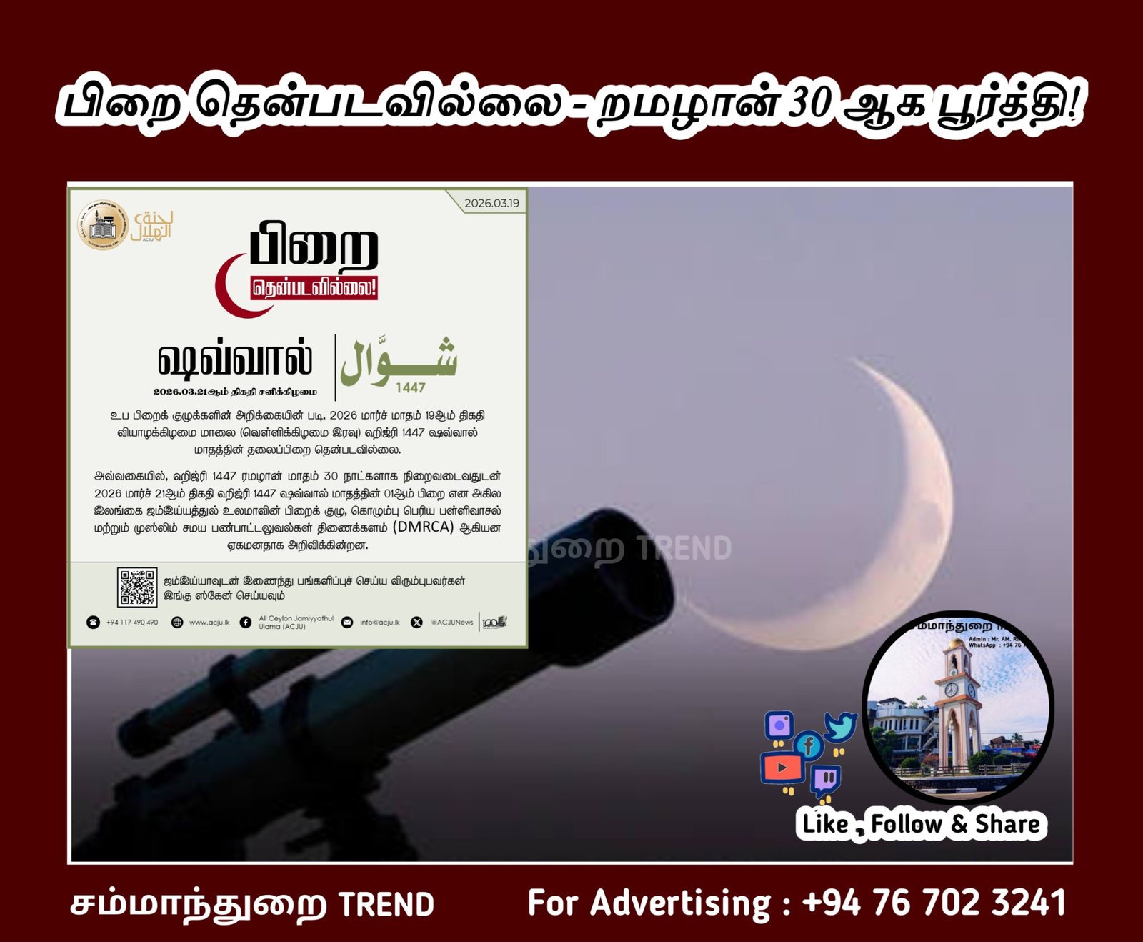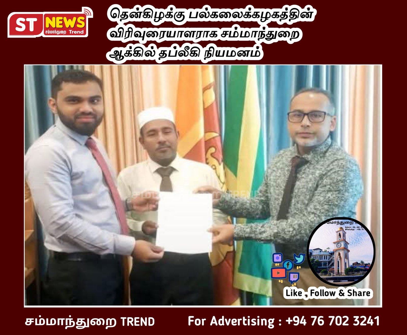 Sammanthurai Trends is the region’s foremost local news brand, delivering timely insights across community affairs, politics, sports, and entertainment. Stay connected with Sammanthurai Weekly, Sammanthurai Daily, and Sammanthurai Online.